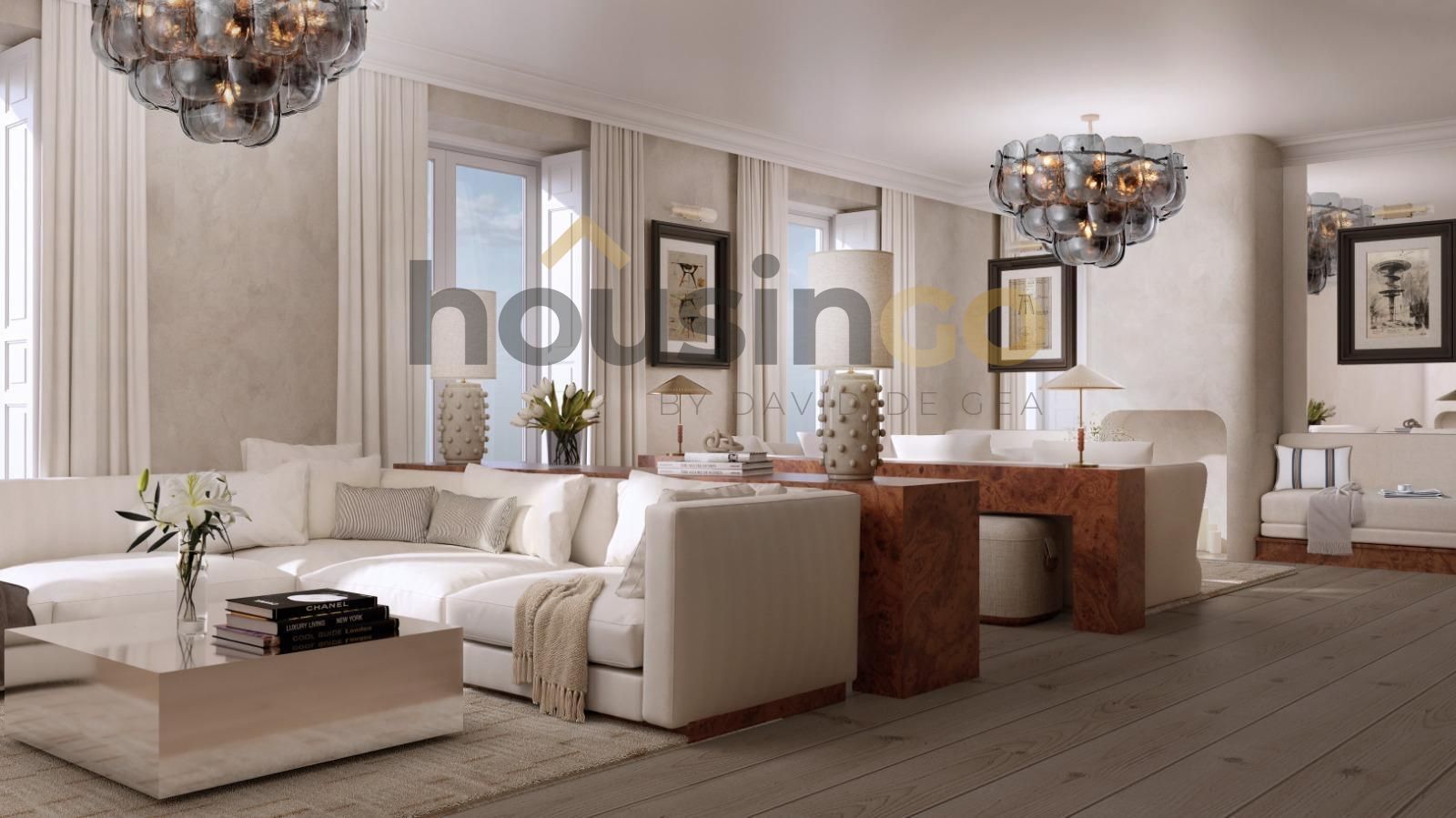 Este piso exterior de 223 m² destaca por su generosa amplitud y una excelente orientación sur que garantiza luz natural en todas sus estancias. Cuenta con 3 balcones que ofrecen vistas a la calle y techos altos de 3.10 m, aportando una gran sensación de espacio y luminosidad. La distribución hace que todos los espacios sean totalmente funcionales, ganando mucha amplitud en cada rincón de la vivienda. Se entregará totalmente reformado, amueblado, equipado y decorado, de la mano de los mejores reformistas e interioristas, tanto nacionales como internacionales.