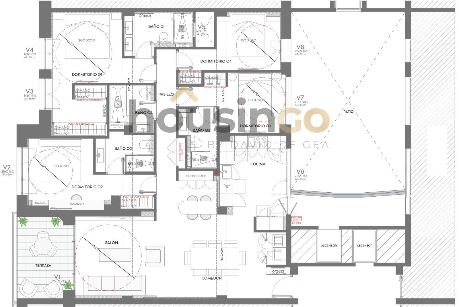 Actualmente la vivienda dispone de una propuesta de reforma. Sus 174 m² se distribuirían en un amplio y luminoso salón comedor con acceso a una terraza orientada a la calle, que aporta ventilación cruzada y abundante luz natural. La cocina, abierta, moderna y funcional, está equipada con electrodomésticos de alta gama y pensada para combinar funcionalidad y estilo. En la zona de descanso se encuentran 4 dormitorios, todos con armarios empotrados. 3 disponen de baño en suite, uno con un amplio vestidor y otro con tocador, mientras que el cuarto cuenta con un baño completo en el pasillo. La vivienda incorpora un sistema de hogar inteligente, que aporta confort y modernidad al día a día.
