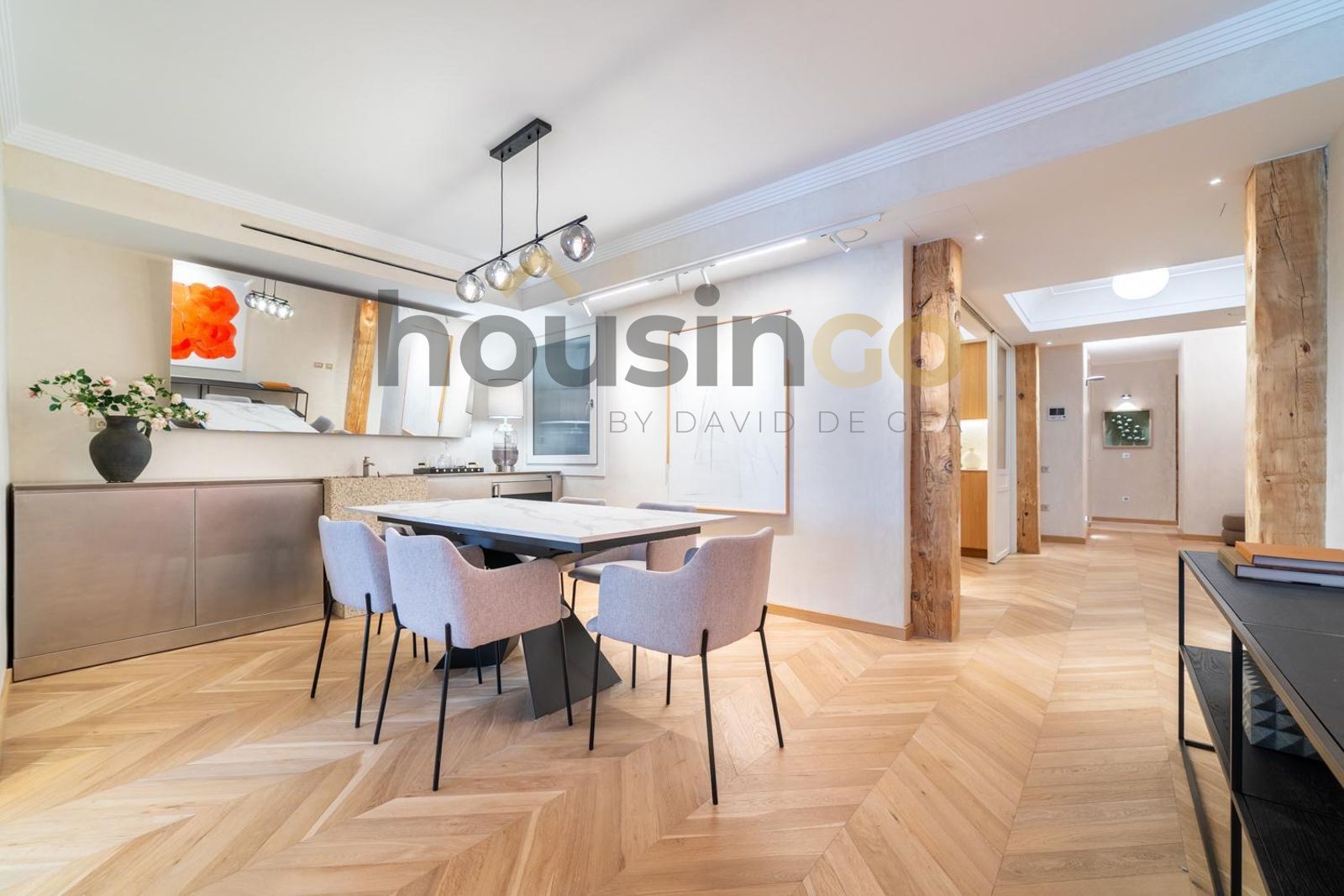 HousinGo presenta este elegante piso reformado a estrenar en el barrio de Goya, una de las zonas más cotizadas y mejor ubicadas de Madrid, rodeada de exclusivos comercios, reconocidos restaurantes y espacios verdes emblemáticos como el Parque del Retiro. Situado en la primera planta exterior de una finca clásica de 1920 con ascensor, esta vivienda combina el encanto de la arquitectura tradicional con el diseño contemporáneo más sofisticado.